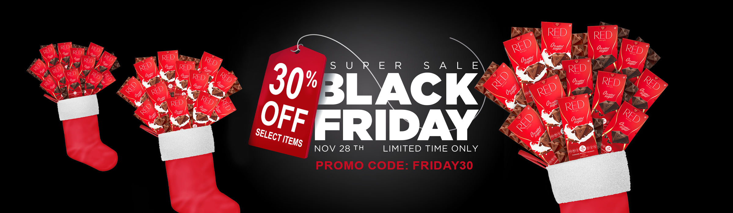 RED Delight®™ Holiday Stocking Filled With 12 Full Size Chocolate Bars