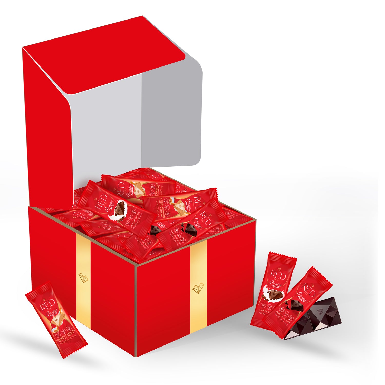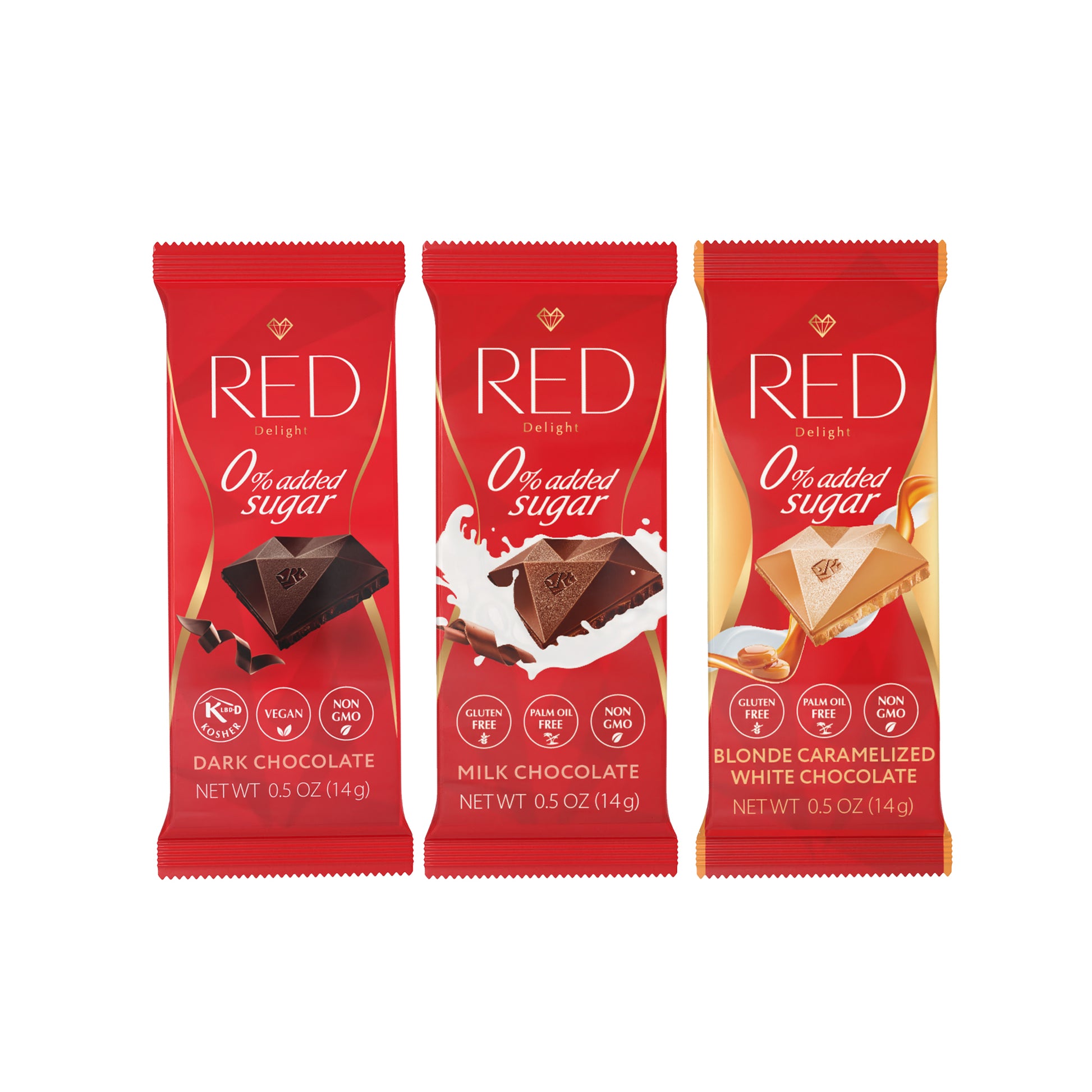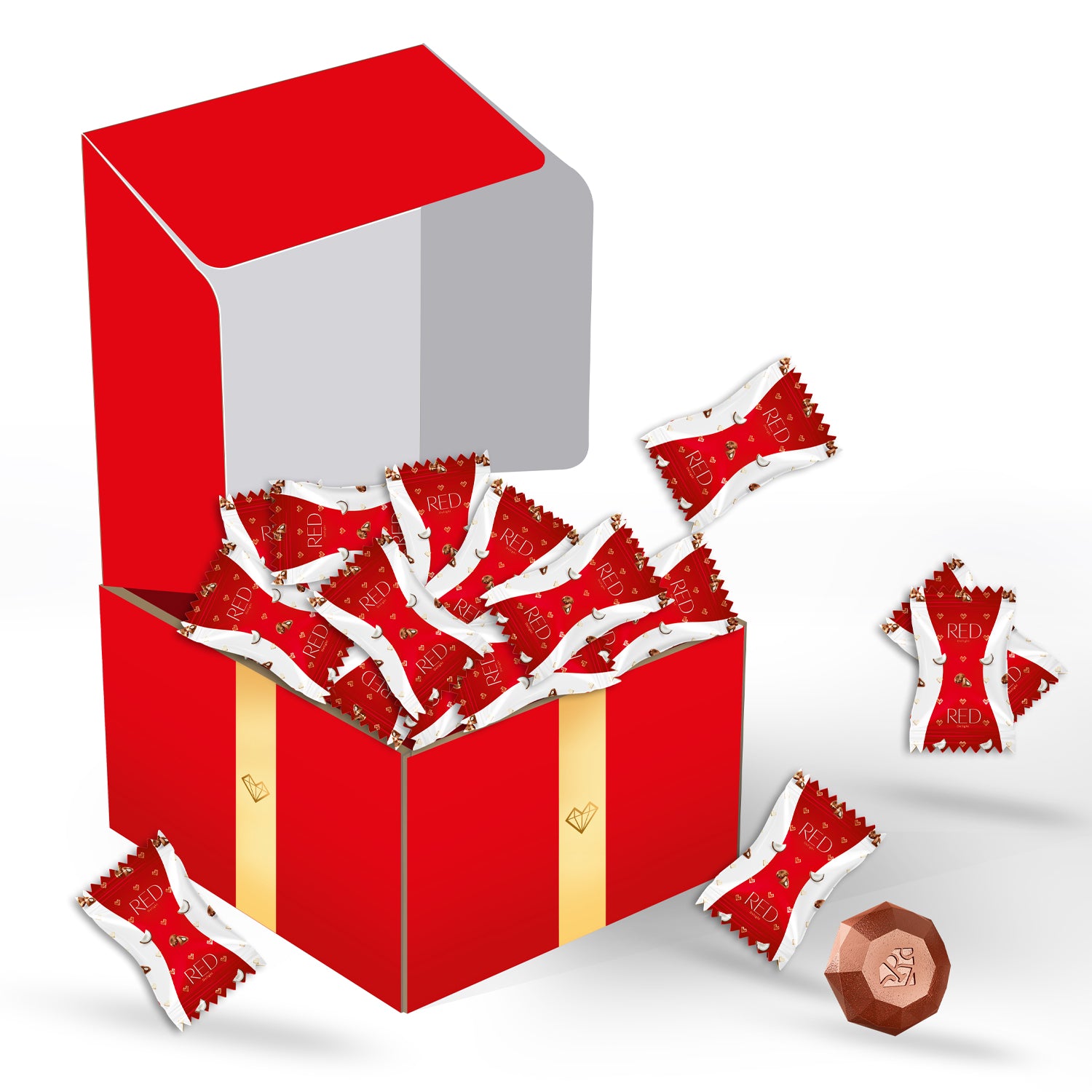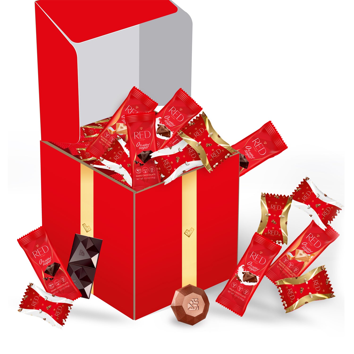 Indulge in RED Delight®™ Chocolate this year. Savor our velvety milk chocolate truffles with a smooth coconut or hazelnut and macadamia filling. Indulge in bite-sized bars in milk, dark, and blonde caramelized white chocolate. Choose 1 of your favorite bite size chocolate bar flavors, a mixed variety of bite sized chocolate bars in all 3 flavors or a combo of both, truffles (in 2 flavors) and bite size chocolate bars (in all 3 flavors). Enjoy 100 individually wrapped chocolates in each gift box, perfect for gifting something sweet this year.