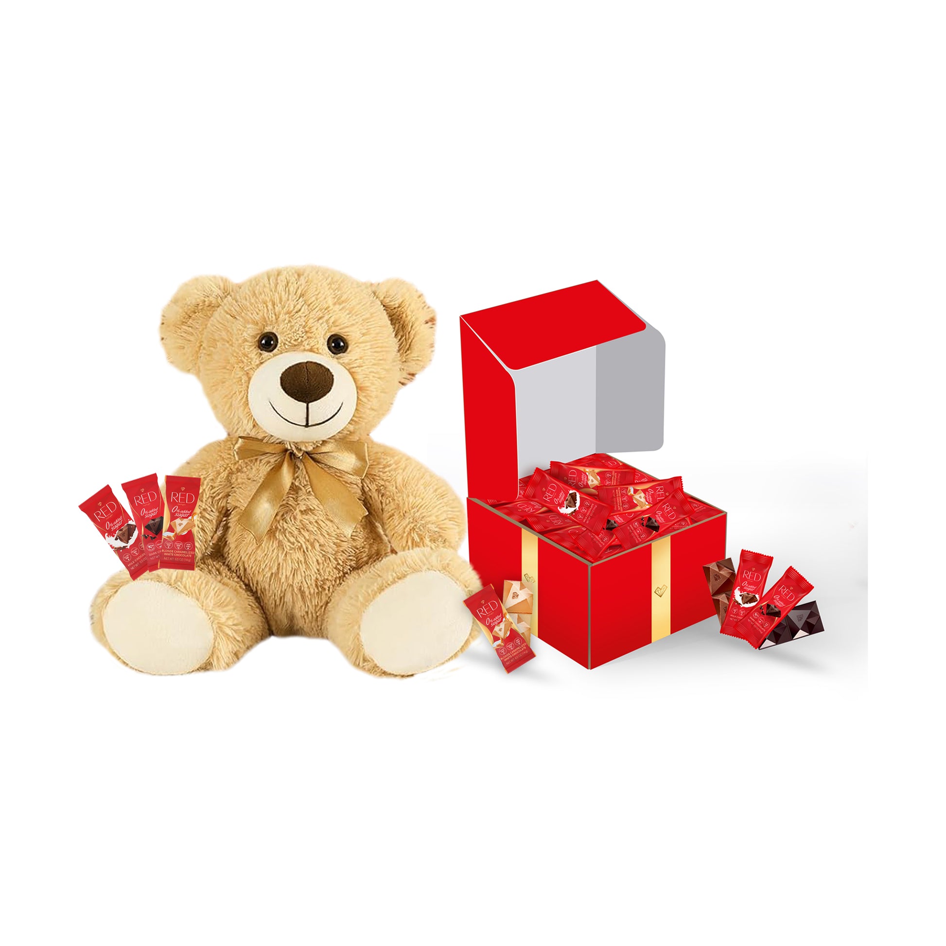 RED Delight®™ Chocolate Gift Box With A Plush Teddy Bear