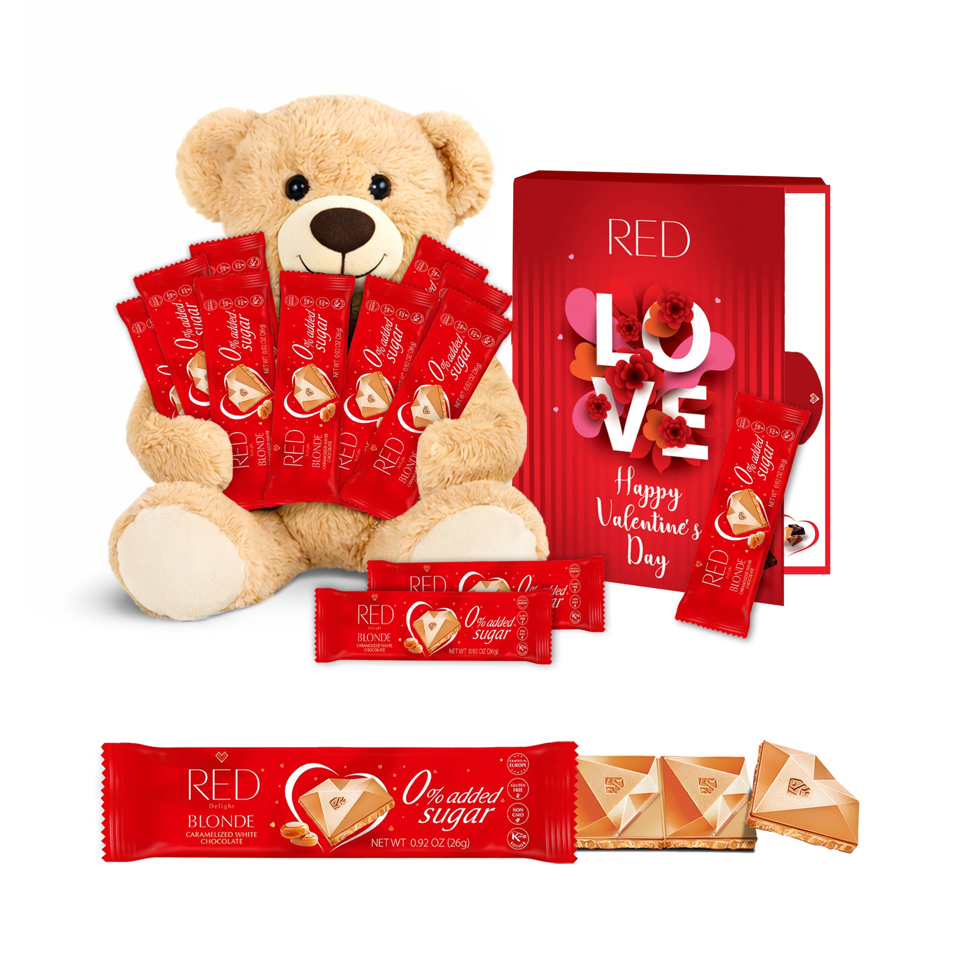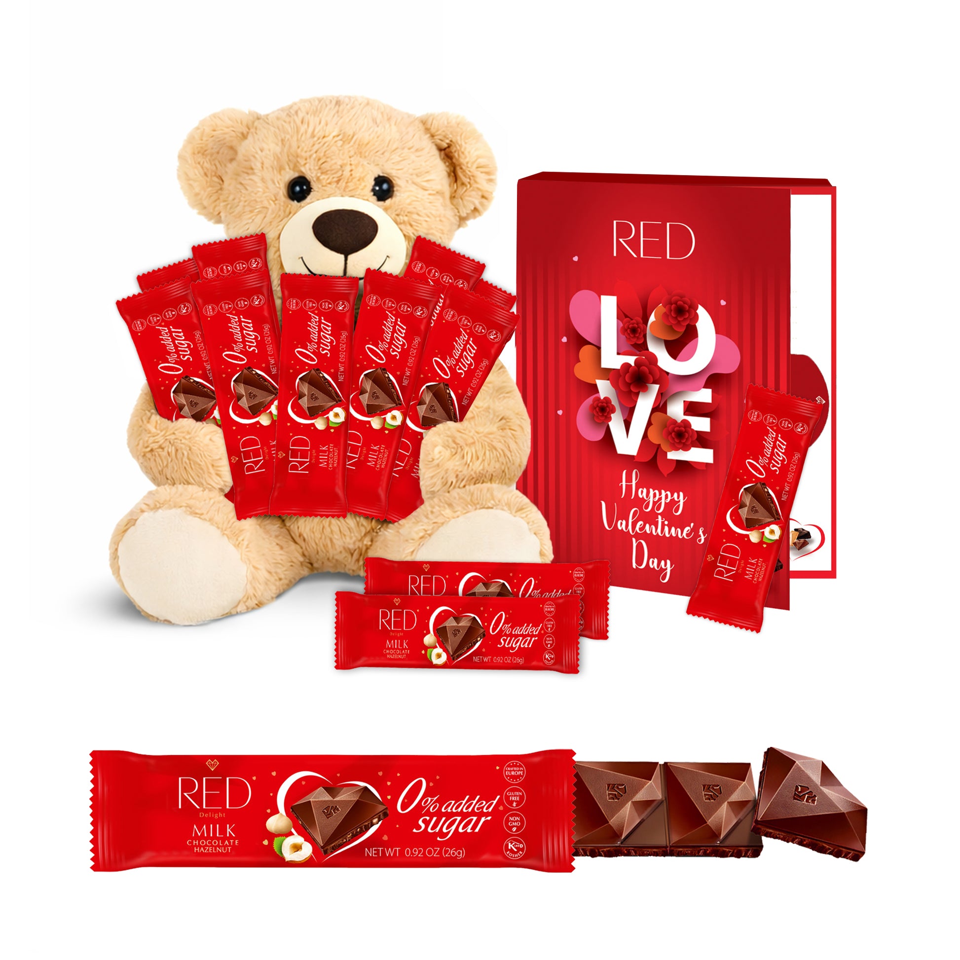 RED Delight®™ Grab N Go Chocolate Bars With Exclusive Valentine's Day Packaging Featuring A Note Card And A 14" Plush Teddy Bear